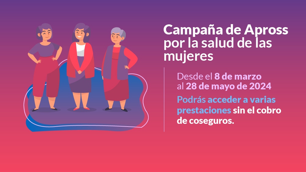 Informamos que Apross lleva adelante una Campaña por la Salud de las Mujeres que consiste en brindar prestaciones sin el cobro de coseguros para incentivar a las mujeres a que se realicen sus controles de rutina.