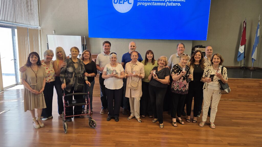 En este marco, y previo al acto homenaje, se llevó adelante la entrega de medallas a compañeras que cumplieron 50 años de afiliación a nuestro sindicato. De este evento participaron familiares de las agasajadas y miembros de la Junta Ejecutiva de UEPC. Estuvieron presentes el secretario general Roberto Cristalli, la secretaria general adjunta, Elizabeth Vidal; la secretaria de Organización, Cecilia Palacios; el secretario de Acción Social, Daniel Baggini y el secretario de Asuntos Jubilatorios y Previsionales, Gustavo Toledo, entre otras compañeras y compañeros de las secretarías gremiales.