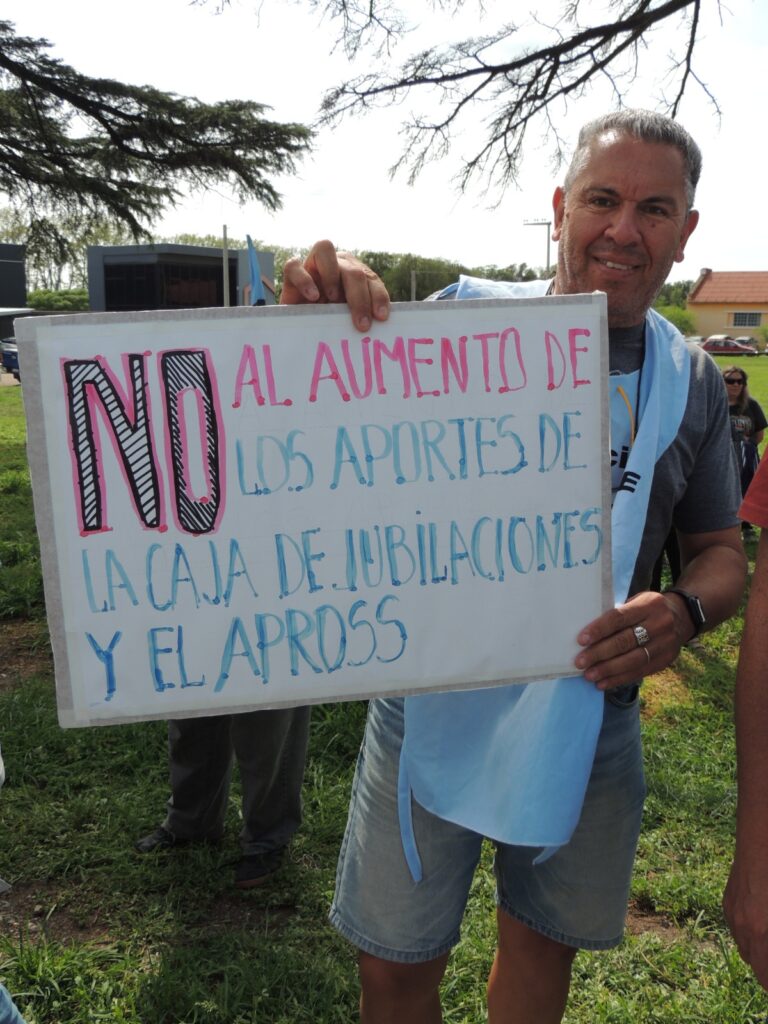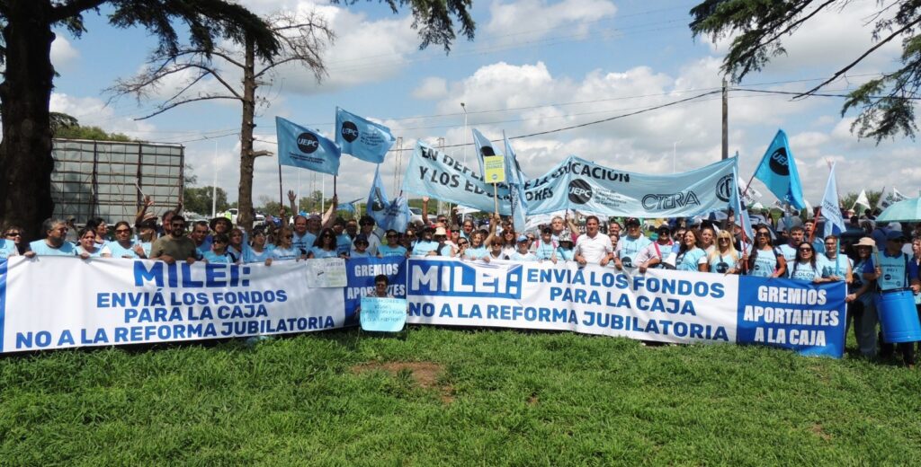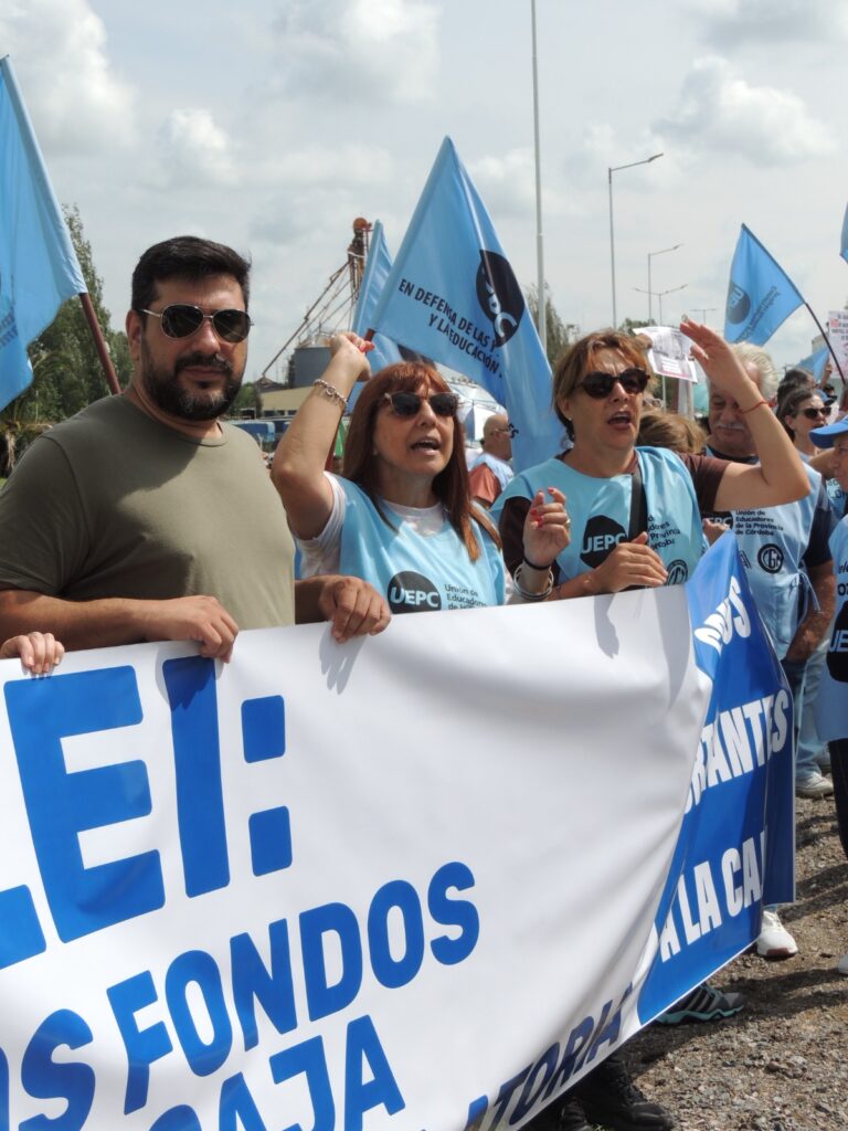 Durante la protesta, nuestro secretario general, Roberto Cristalli, afirmó: “Exigimos al Presidente de la Nación que envíe los fondos para la Caja de Jubilaciones de Córdoba que ayudarán a aplacar el impacto de la reforma jubilatoria”. “Al Gobernador Llaryora le reclamamos que derogue la Ley de Equidad Jubilatoria que perjudica a activos y jubilados”, agregó Cristalli.