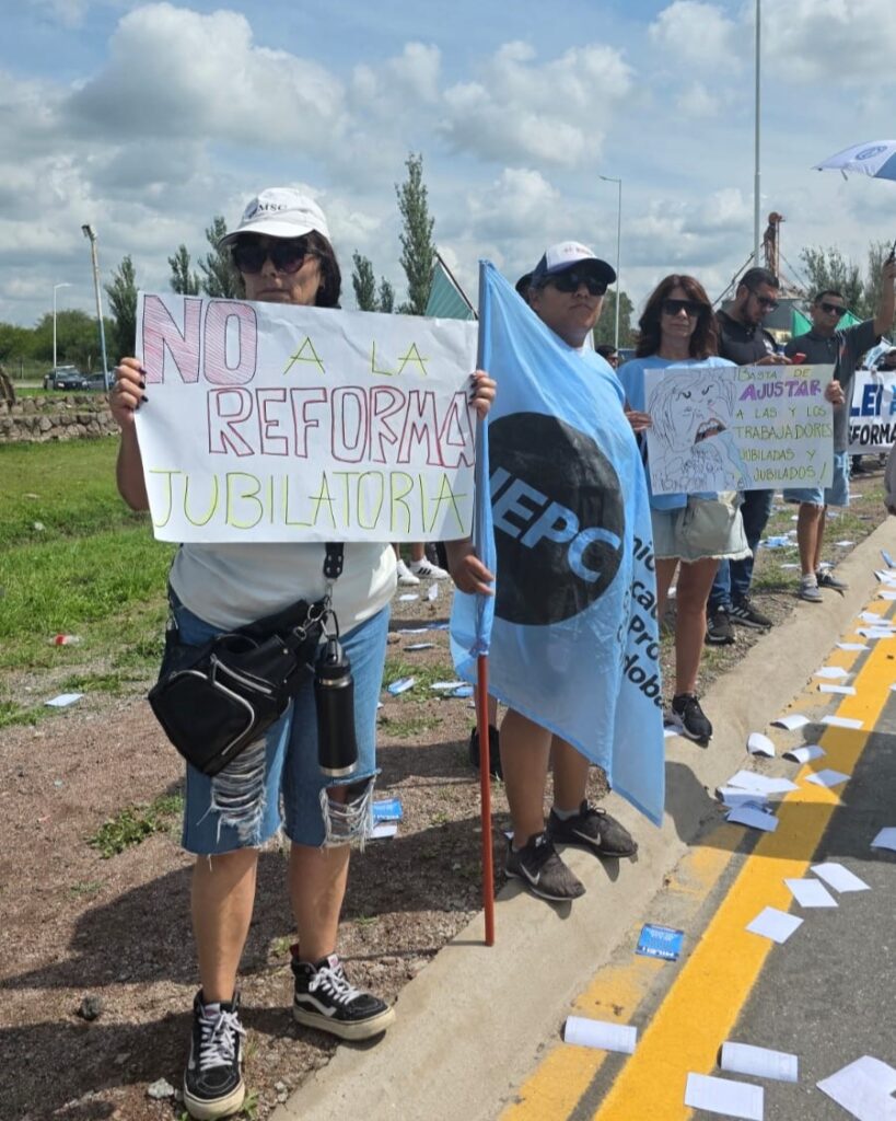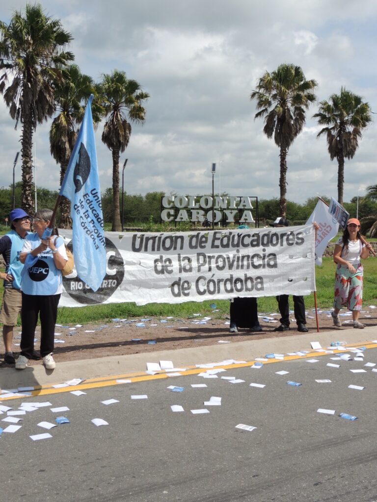 Previo a la visita del Presidente Milei a Jesús María, en la mañana de hoy los gremios estatales y aportantes a la Caja de Jubilaciones de Córdoba realizamos una protesta sorpresiva, pacífica y sin corte de ruta en el ingreso a la ciudad de Colonia Caroya.