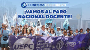 El Congreso Nacional de CTERA reunido hoy jueves 22 de febrero resolvió realizar un Paro Nacional Docente el próximo lunes 26 de